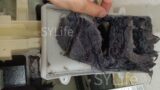 分解したところ、ヒートポンプ表面にホコリが詰まり、さらに内部のホコリが水分を吸ってカビ化している状態が確認されました。